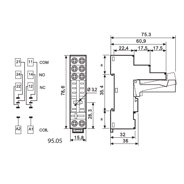 95059SPA | Розетка с винтовыми клеммами (с зажимной клетью) для реле 40.51, 40.52, 40.61, 40.62, Finder