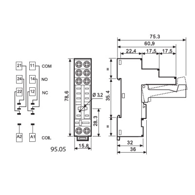 Предназначена для сборки в единое изделие реле и дополнительных модулей и установки на монтажную поверхность или 35мм. din-рейку