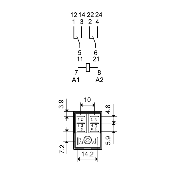 — Основные характеристики и маркировка на лицевой стороне реле.