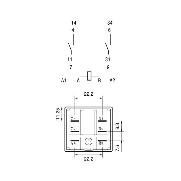 Контакты реле на 16 А выполнены из оксида серебра и кадмия AgCdO. Такой сплав обладает высокой износостойкостью и устойчивостью к расплавлению. Реле можно использовать для включения индукционной нагрузки или маломощных двигателей.