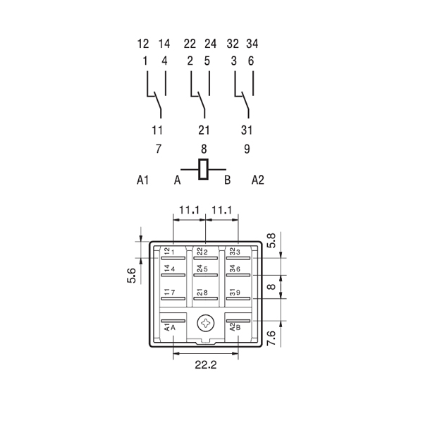 Контакты реле на 16 А выполнены из оксида серебра и кадмия AgCdO. Такой сплав обладает высокой износостойкостью и устойчивостью к расплавлению. Реле можно использовать для включения индукционной нагрузки или маломощных двигателей.