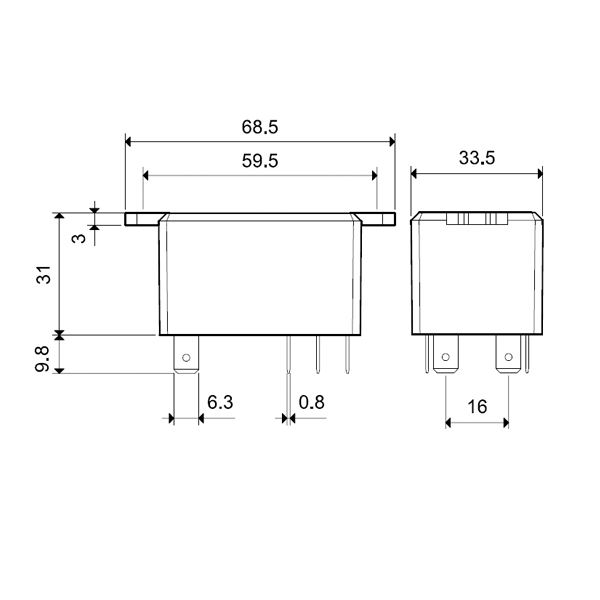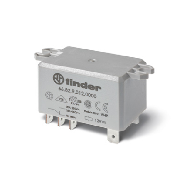 668290121000 | Реле с клеммами в наконечники Faston 250 серии 66.82, управление 12В DC, контакты AgNi 2CO 30А, Finder