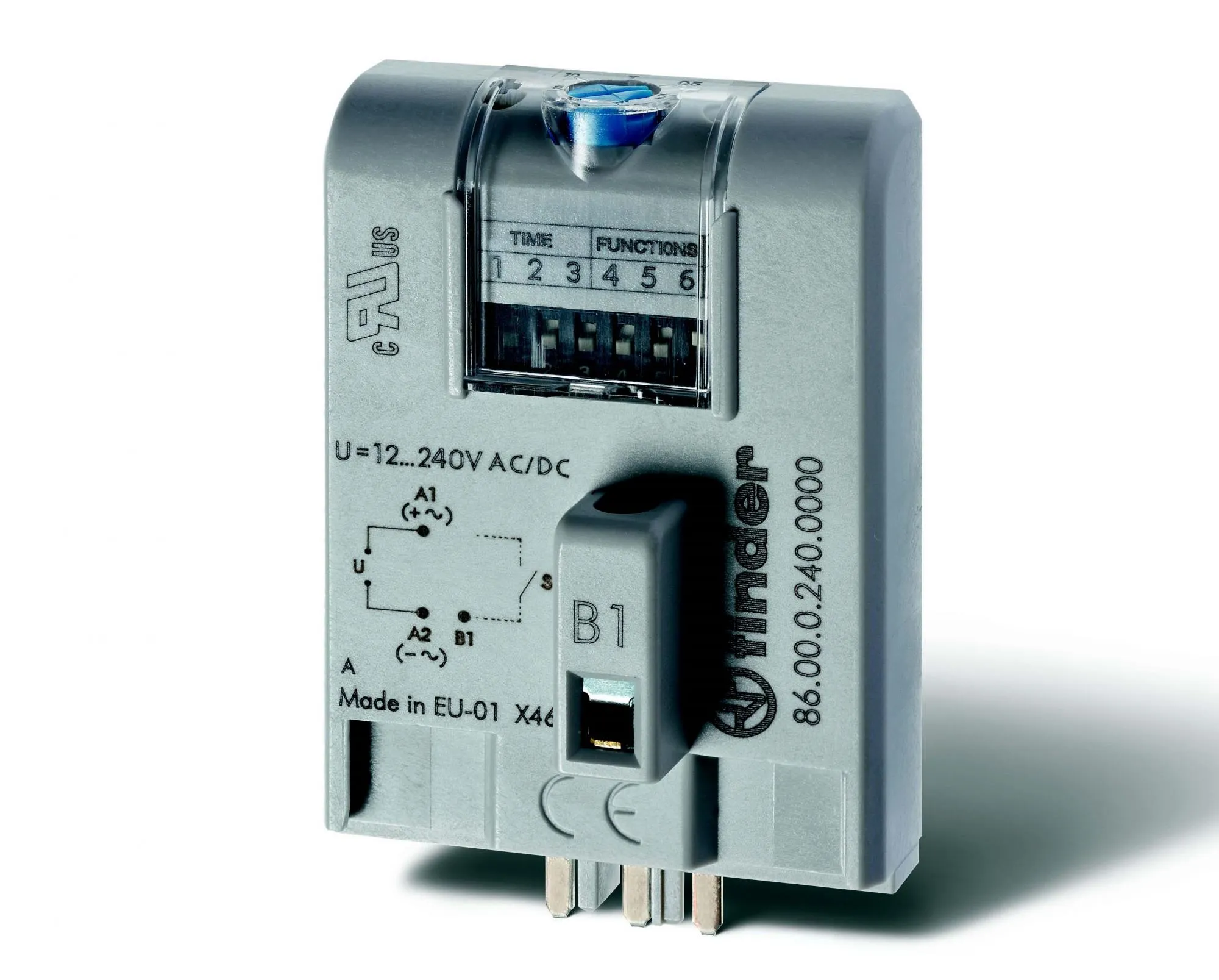 Таймерный модуль Finder, 86 серии для монтажа в розетки 90.02/ 96.04/ 90.03/ 92.03. Для реле с напряжением катушки 12...240В AC/DC.