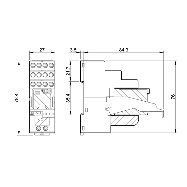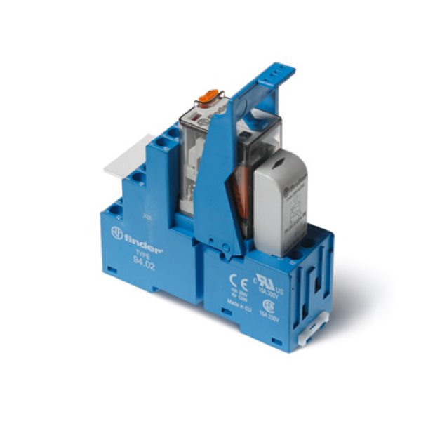 Модуль реле в сборе с розеткой и готовый к монтажу на DIN-рейку. Состоит из реле 55.34.9.024.0040 + 99.02.9.024.99 + 94.04SMA