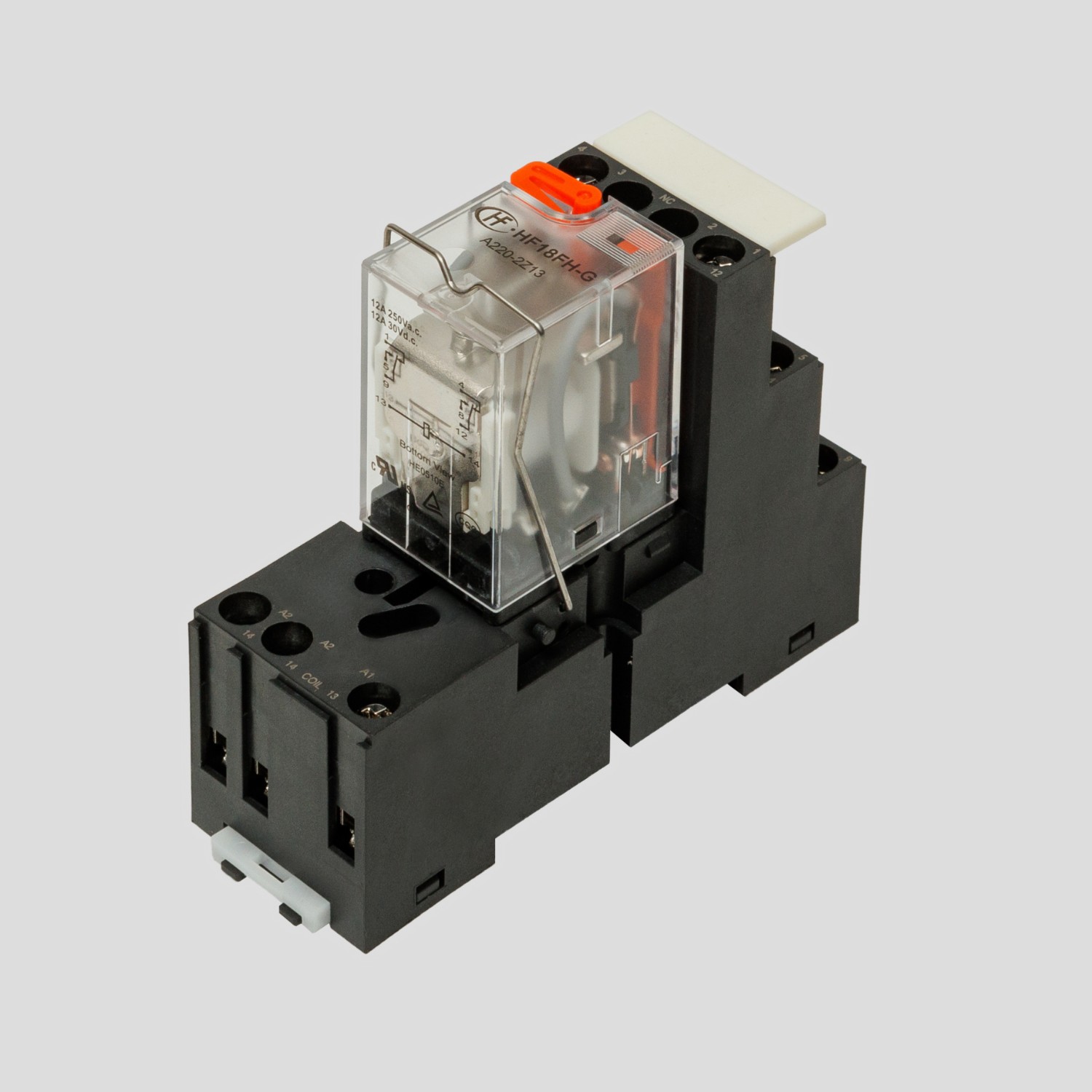 HF18-220AC-2 | Комплект реле: колодка винт;пластиковая клипса;маркер + реле Hongfa 2CO 12A; AgNi; катушка 220B AC