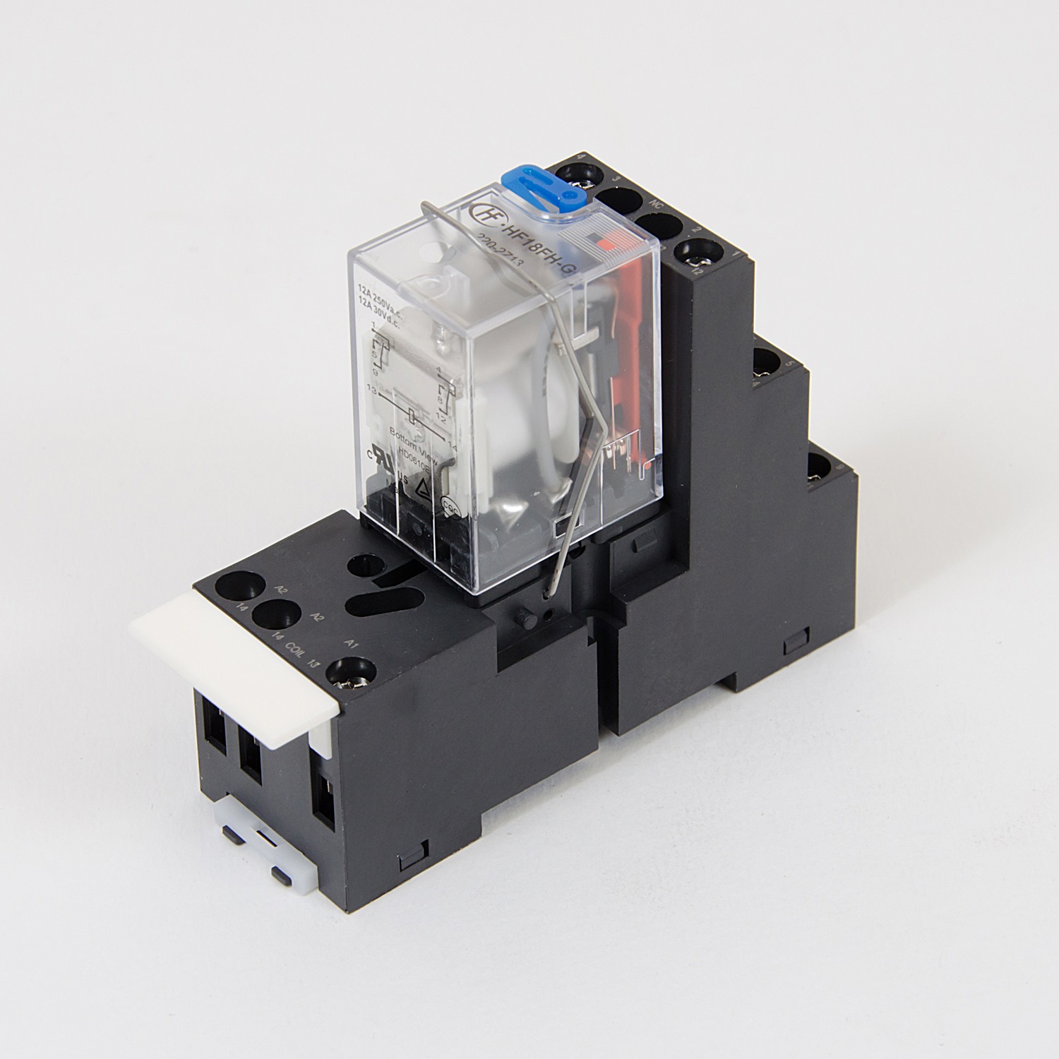 HF18-220DC-2 | Комплект реле: колодка винт;пластиковая клипса;маркер + реле Hongfa 2CO 12A; AgNi; катушка 220B DC