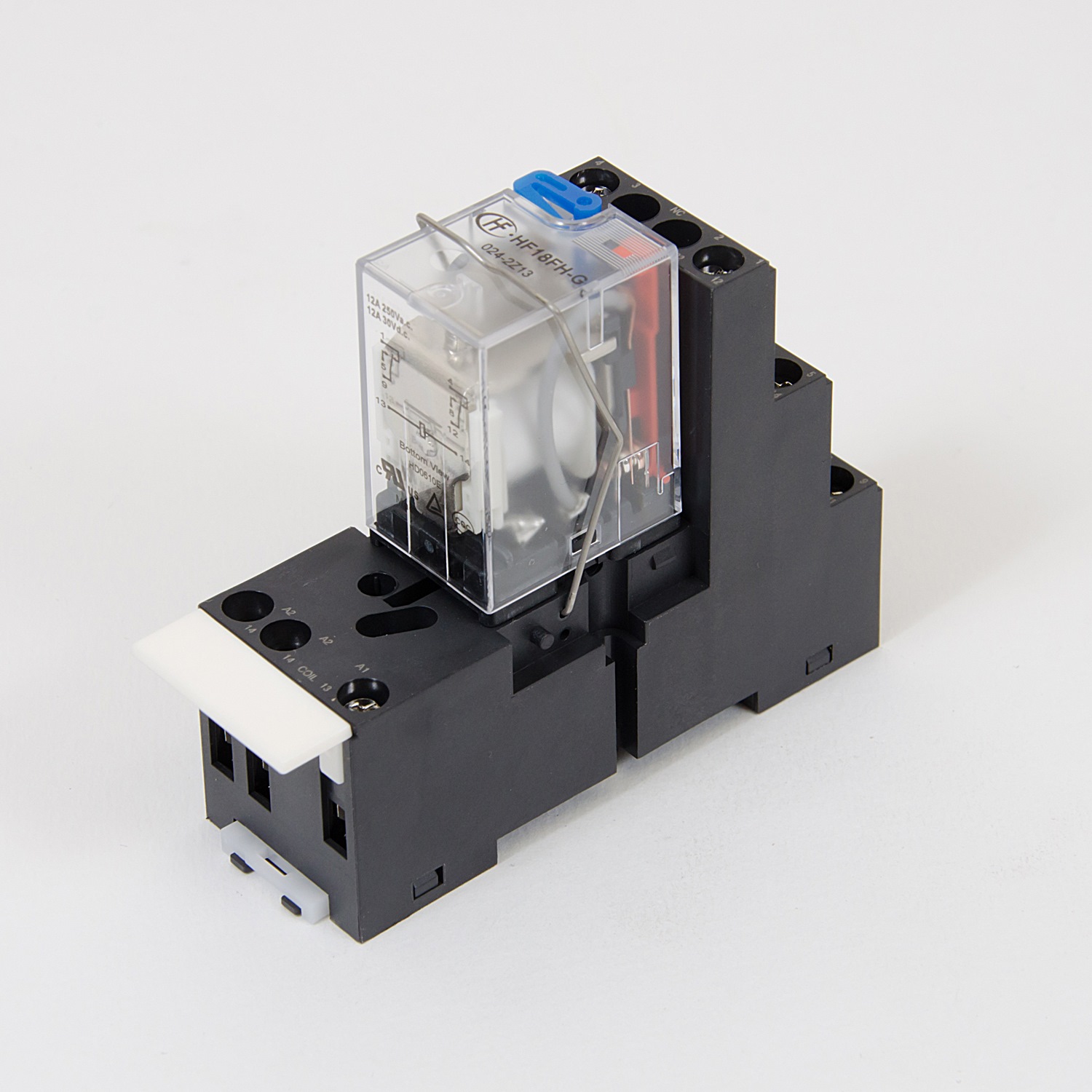 HF18-024DC-2 | Комплект реле: колодка винт;пластиковая клипса;маркер + реле Hongfa 2CO 12A; AgNi; катушка 24B DC