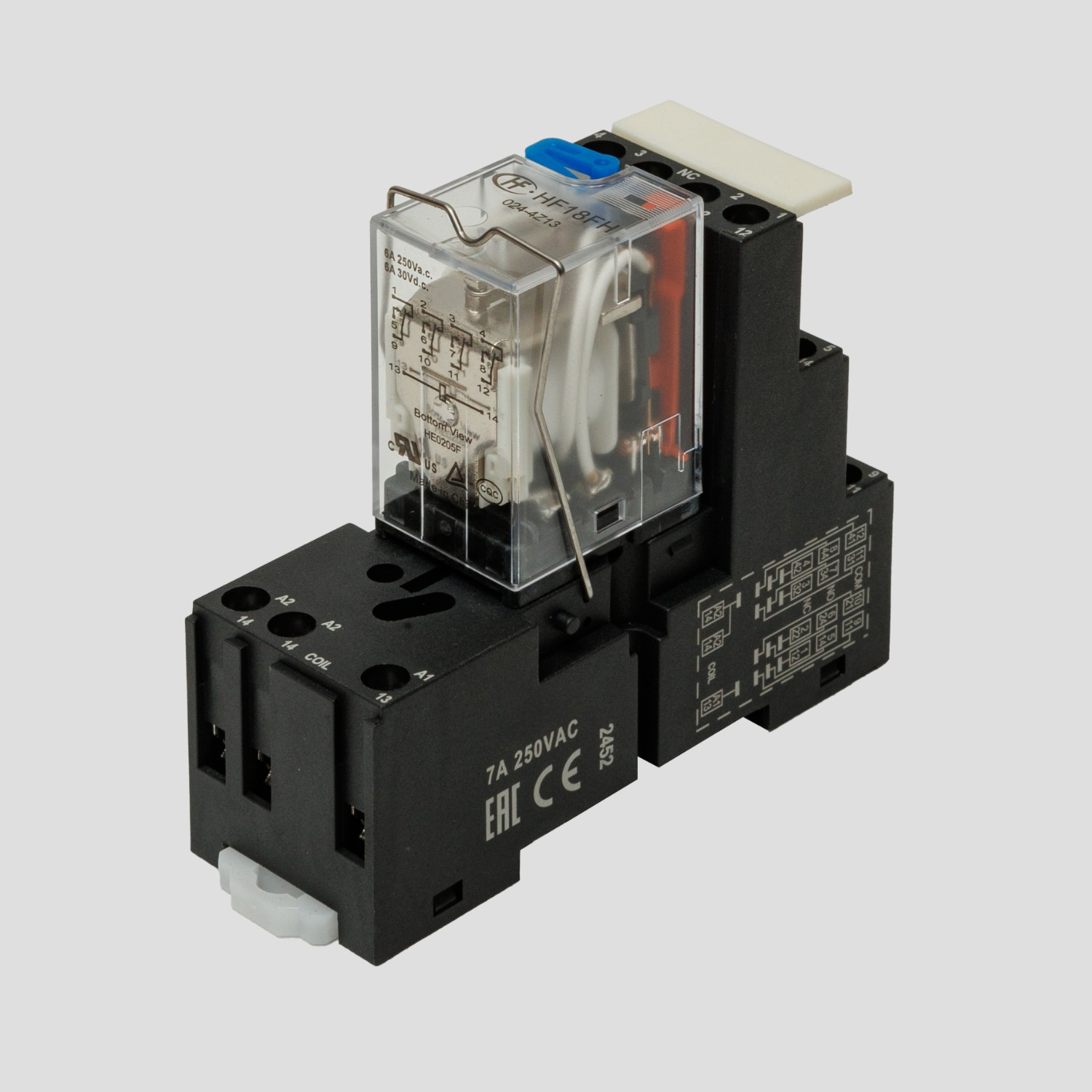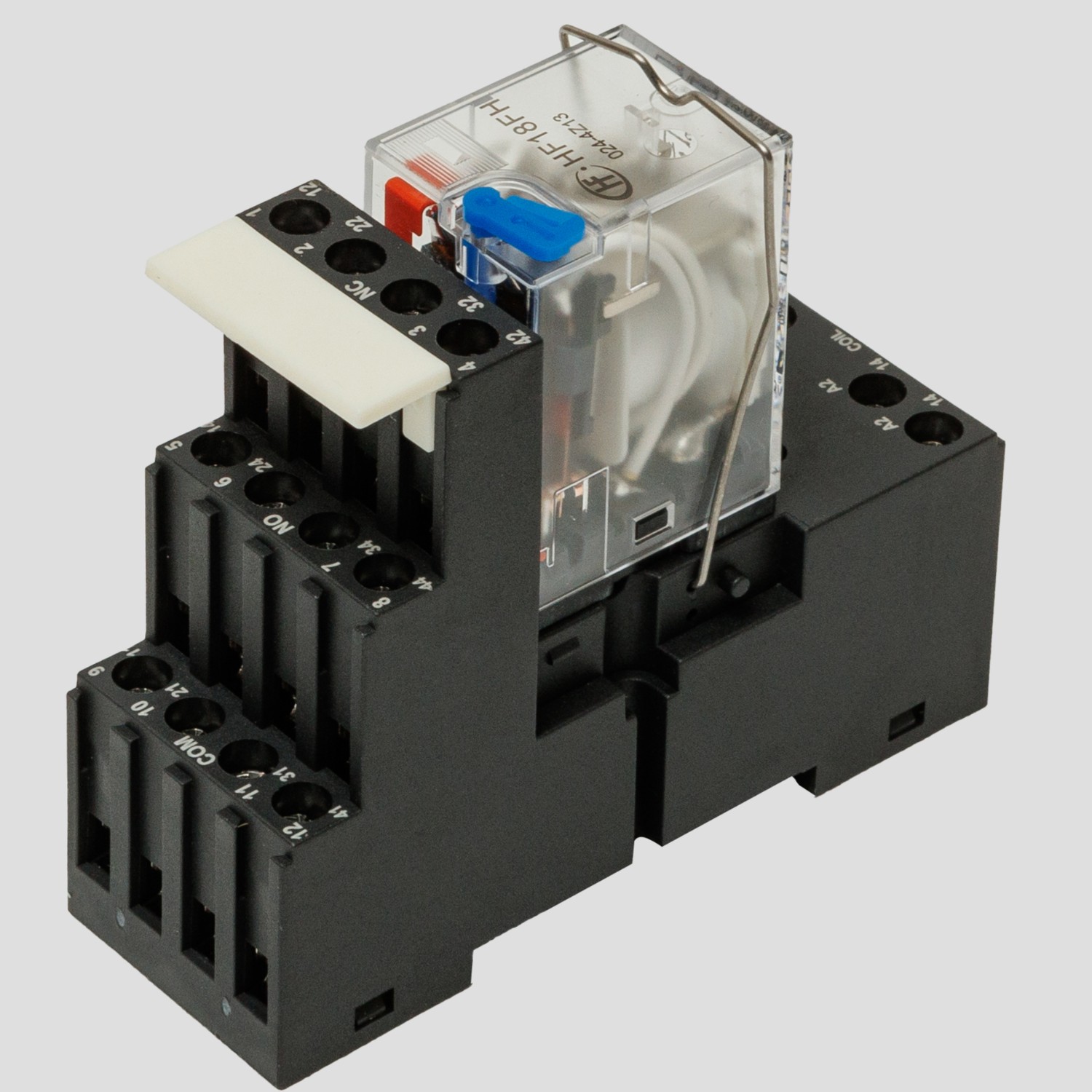 HF18-024DC-4 | Комплект реле: колодка винт;пластиковая клипса;маркер + реле Hongfa 4CO 6A; AgNi; катушка 24B DC