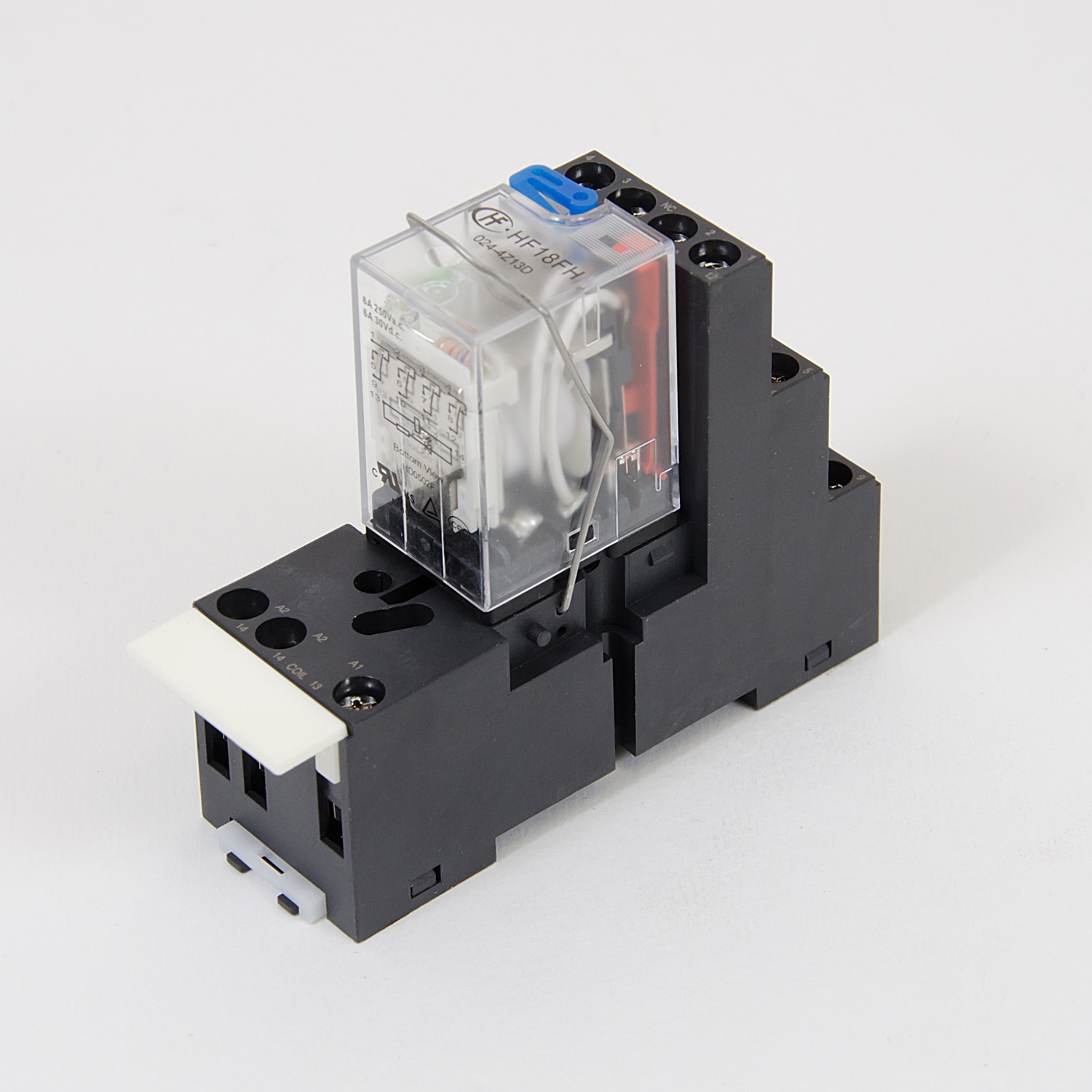 HF18-024DC-4-LED | Комплект реле: колодка винт;пластиковая клипса;маркер + реле Hongfa 4CO 6A; AgNi; катушка 24B DC,LED