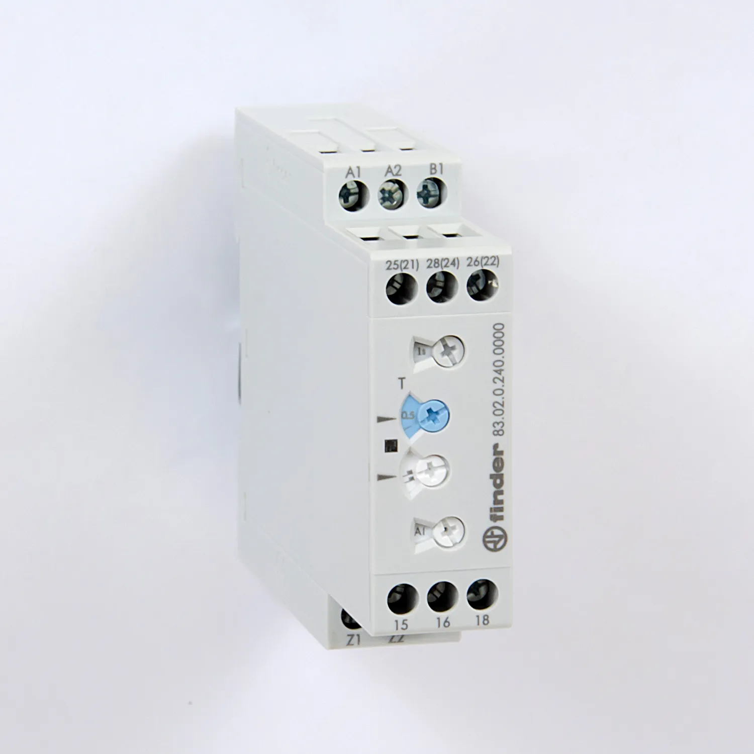 Модульный таймер Finder, серии 83. Серия включает реле с выдержкой времени от 0,05 секунд до 10 дней, специальные версии 2 переключающих контакта с задержкой или контакт мгновенного действия + контакт с задержкой.