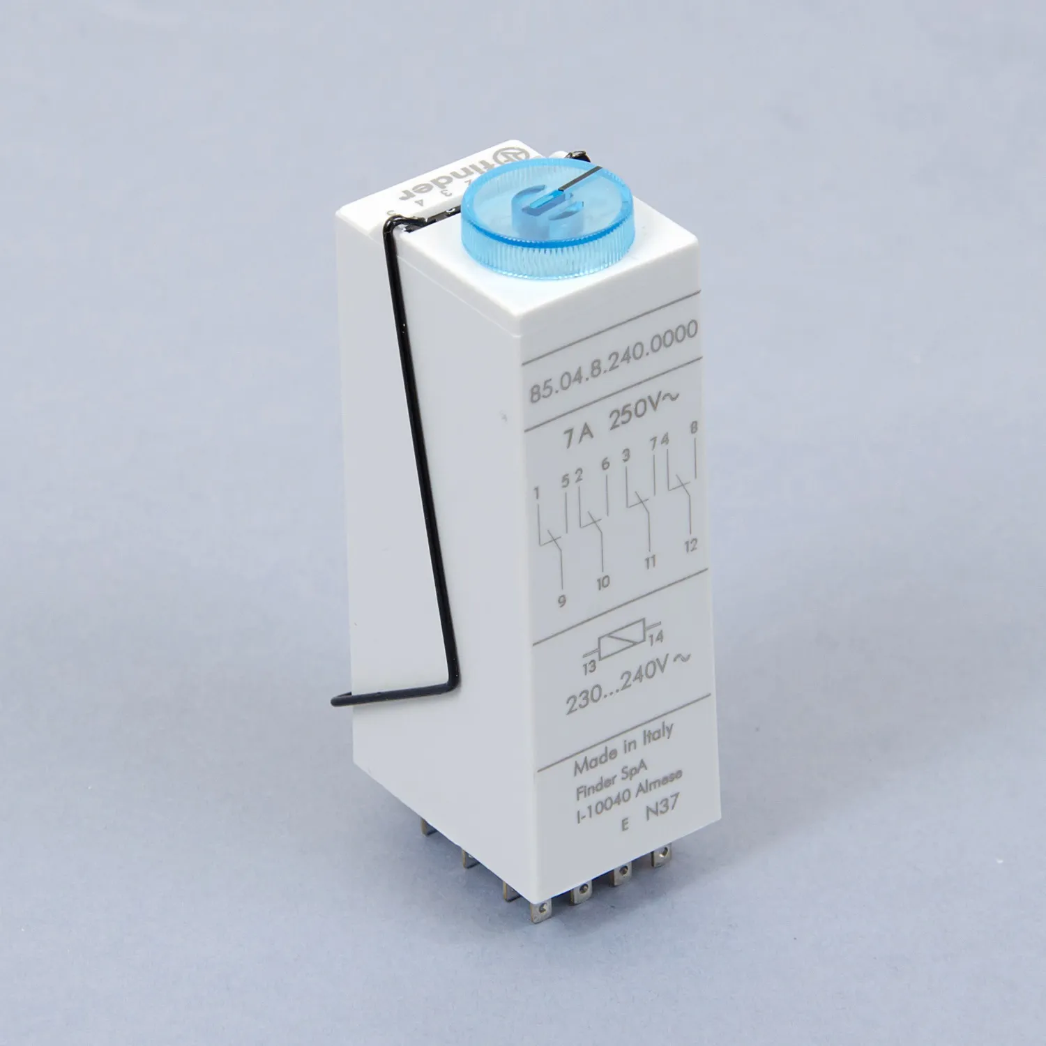 Таймер Finder, серии 85 для установки в розетки арт. 94.04. Серия включает реле с выдержкой времени от 0,05 секунд до 100 часов, двумя, тремя или четырьмя переключающим контактоми 7 или 10А категории AC-1 .