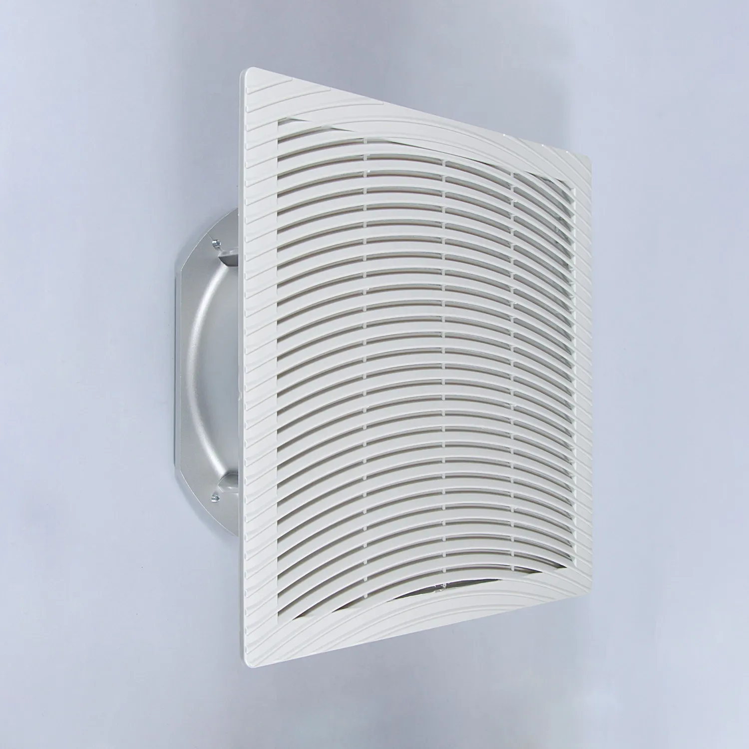 Кроме вентилятора, на шкаф необходимо установить выпускную решетку. Вентилятор закачивает холодный воздух в шкаф, а выпускная решетка выпускает горячий воздух из шкафа. Этим обеспечивается циркуляция воздуха и отвод тепла. Выпускная решетка одинакового размера с вентилятором - арт. ID GS291.