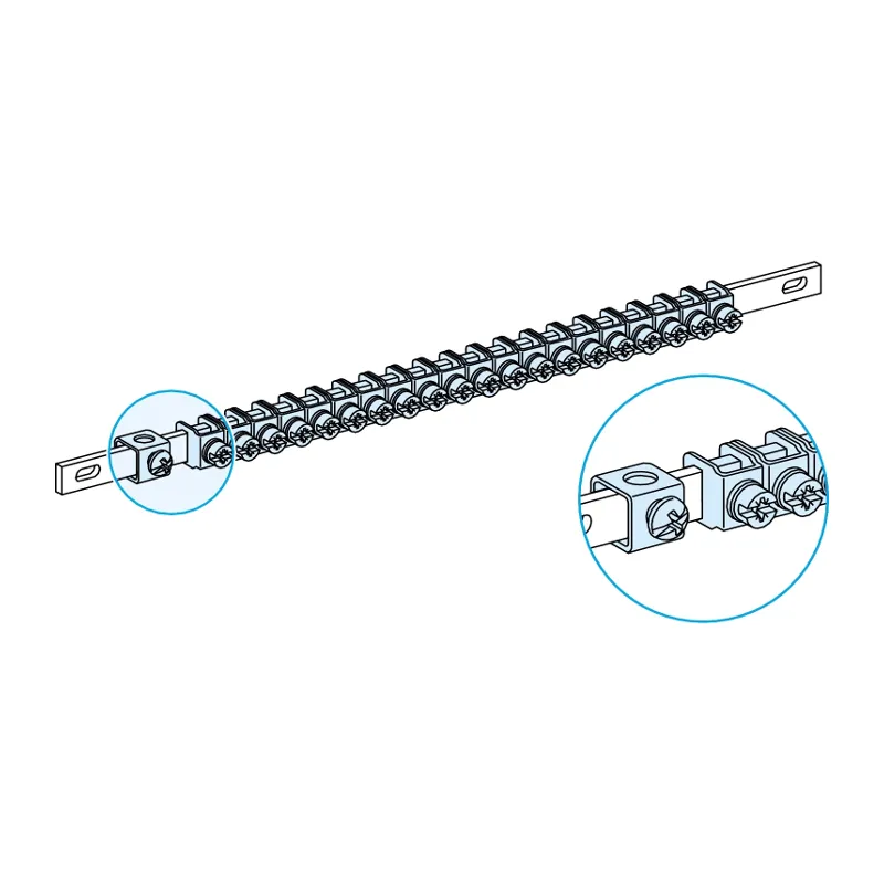 Представляет из себя шину длиной 450 мм. Шина снабжена 40 винтовыми клеммами для подключения заземляющих проводников.