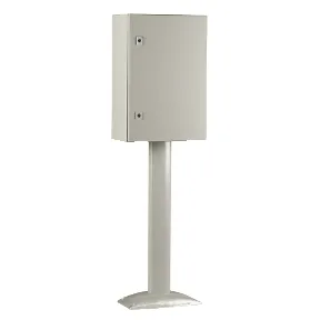 Применяется при монтаже навесного шкафа на полу. Например, если шкаф используется как стационарная панель управления. Внутри стойки предусмотрена полость 75х50 мм для подвода кабелей и проводов. Высота от пола до основания шкафа – 800 мм. Подходит для шкафов размерами не более (ВхШхГ) 600х400х250 мм, кроме шкафов 200х200х150 мм и 250х200х150 мм. Для установки стойки на шкаф необходимо докупить соединительную плату арт. NSYAEFP.