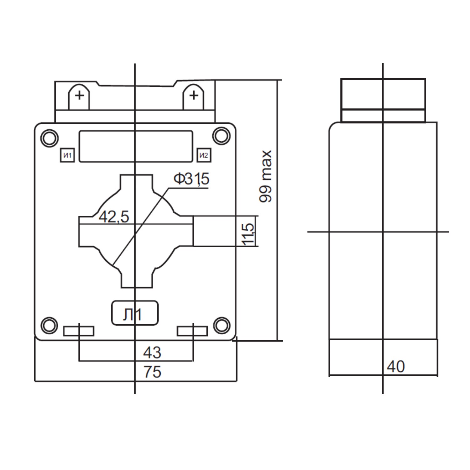 50140DEK | Трансформатор тока ТШП-0,66 0,5 400/5 5ВА, диаметр 40мм, Dekraft