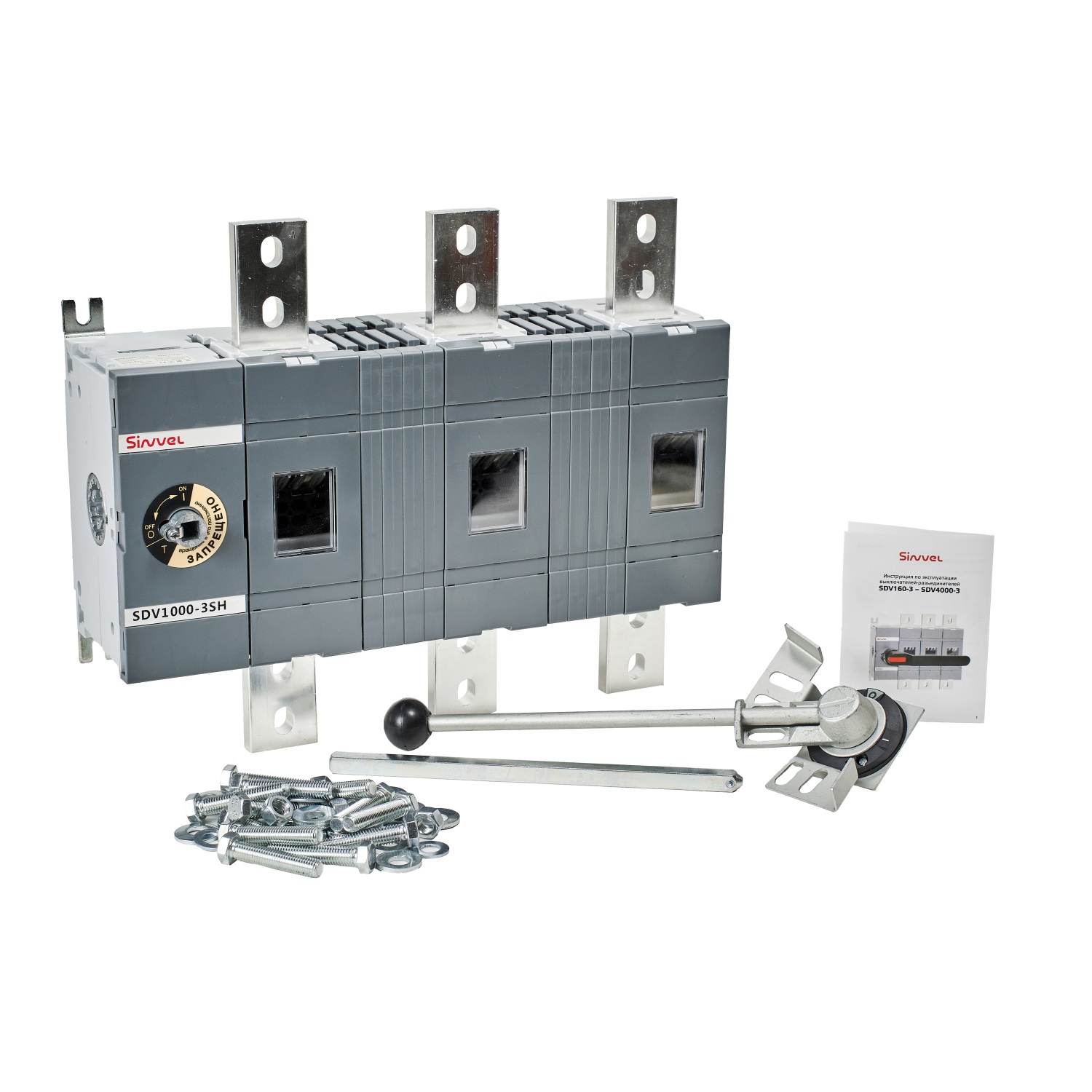 SDV1000-3SH | Выключатель-разъединитель, 1000 А, 3Р, видимый разрыв, межпол расст 140 мм, шток 280 мм, Метал ручка, Sinvel