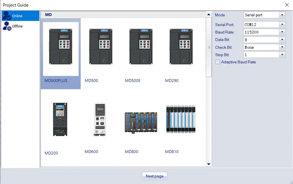 Для того чтобы попасть в полное меню настройки Inovance MD520 необходимо: