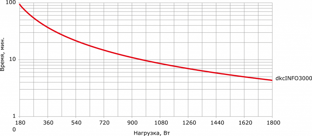 Графики подбора ИБП в зависимости от нагрузки и времени автономного питания: