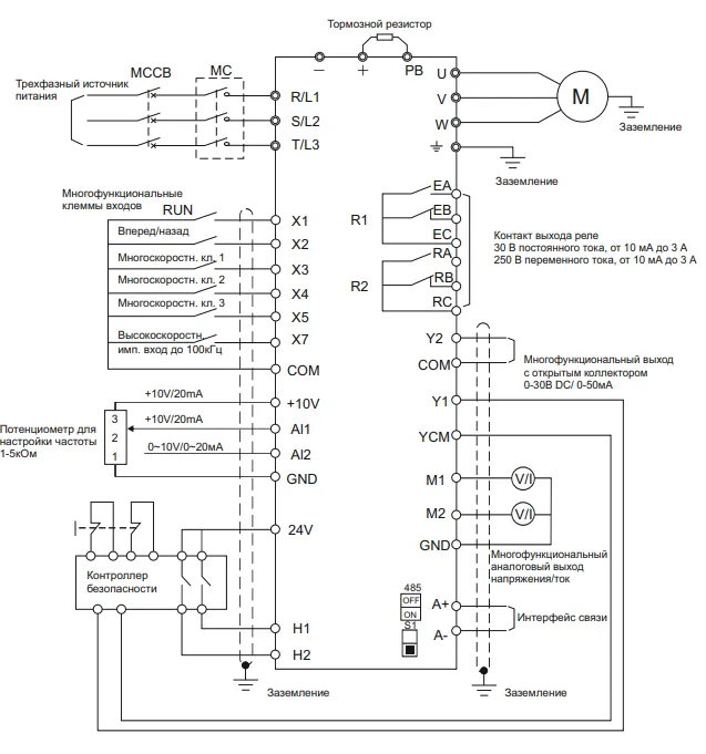 -Встроенные клеммы RS-485 (Modbus-RTU);