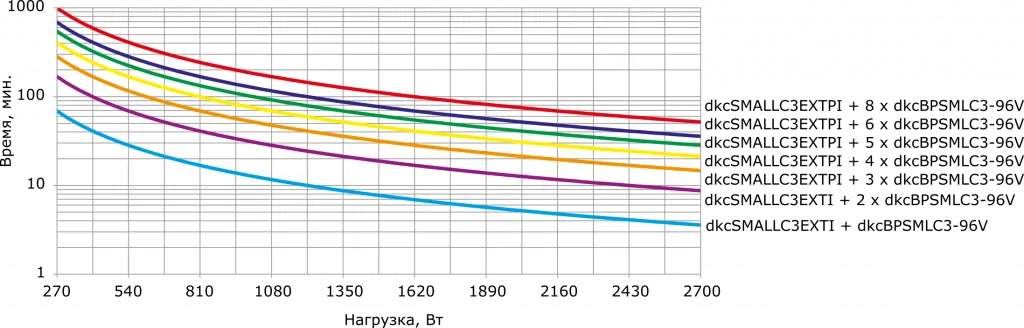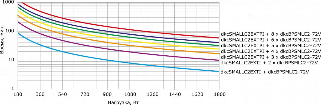 Графики подбора ИБП в зависимости от нагрузки и времени автономного питания: