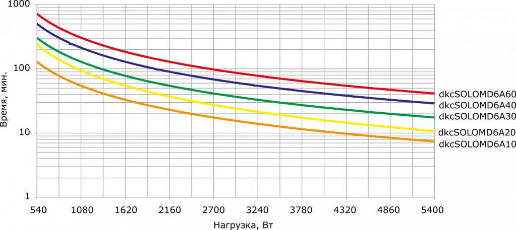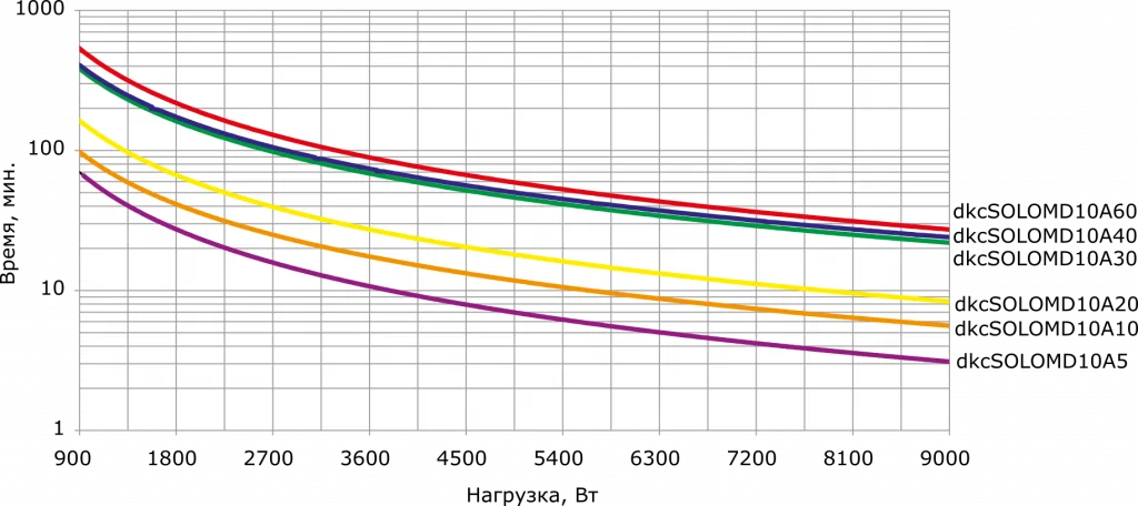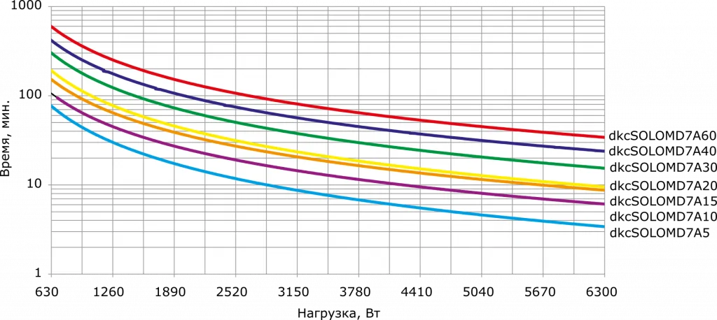 Графики подбора ИБП в зависимости от нагрузки и времени автономного питания: