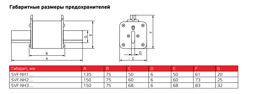 | SVF-NH00T1000 ( Габарит NH1 ) | ||||||||||||||||||||||||
